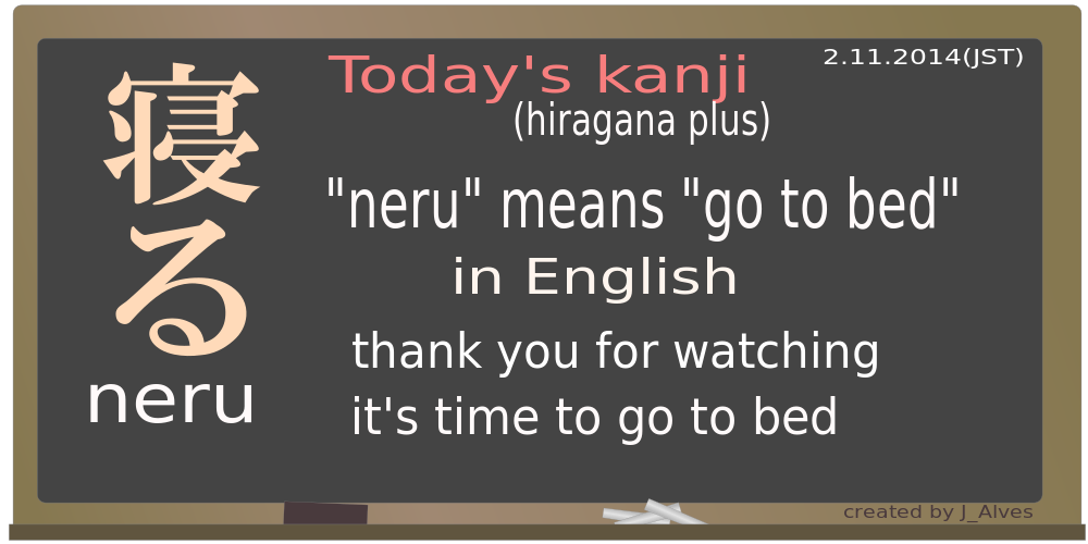 Tags: blackboard, chalk, chalkboard, education, school, today's kanji, hirakana plus, neru, means go to bed in english. thank you for watching it's time to go to bed.