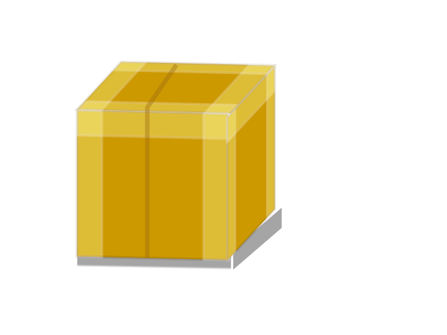 This features a large, square yellow box with a clear plastic window. This box is likely used for shipping purposes and has a distinctive appearance due to its bright color and transparent material. The box appears to be sitting on top of a table or counter, possibly in a warehouse or distribution center. The overall scene gives off an impression of efficiency and organization, as the large box is ready to be filled with items for transportation.