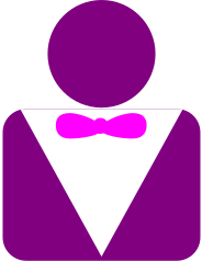 This features a purple silhouette of a person wearing a white shirt and a pink bow tie. The bow tie is positioned around the neck, adding a touch of color to the otherwise monochromatic outfit. The overall appearance gives off a sense of elegance and sophistication.