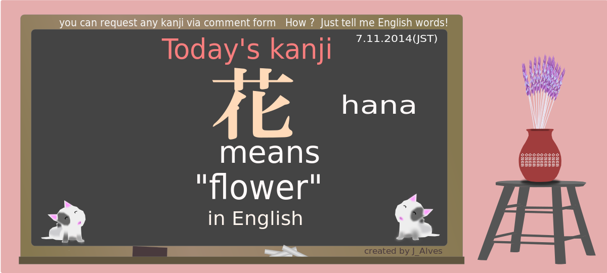 This is a completely free image Today's KaniJi: Hana Means 'Flower' in English that you can download, post, and use for any purpose.