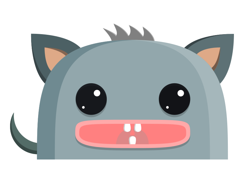This features a cartoon-like character with a big mouth and three teeth. It has two eyes, one on each side of its face, and a nose in the middle. The character is wearing a necklace around its neck, adding to its unique appearance. The illustration is set against a white background, which helps to emphasize the character's features. This image could be used for various purposes such as an advertisement or a decorative piece.