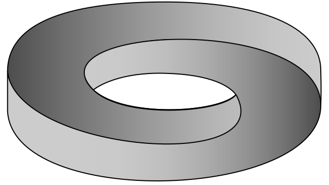 This features a circular object that appears to have no top or bottom side. It is gray in color and has a black outline, giving it an optical illusion-like appearance. This unique design element adds visual interest to the piece, making it stand out from more traditional circular objects.