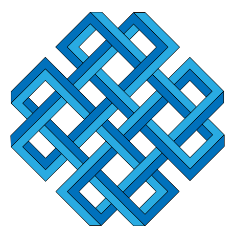 This features a blue and white geometric pattern, which appears to be an optical illusion. This design is composed of interconnected circles or squares that create the illusion of depth and complexity. The intricate pattern is reminiscent of a kaleidoscope, with each piece forming a part of the larger whole. The blue color adds a sense of calmness and tranquility to the overall composition. This design could be used in various applications such as wallpaper, fabric patterns or even as an artistic centerpiece for a room.
