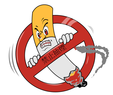 This features a cartoon-like character, which appears to be an angry cigarette butt. It is holding up a red and white sign that reads "no smoking" in Chinese characters. The angry cigarette butt seems to be the main focus of the picture, with its facial expression conveying a sense of displeasure or annoyance. The character's design adds a playful touch to the otherwise serious message of the sign.