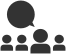 This features a group of five people sitting in front of each other, with one person being larger than the others. Above this person's head is a black speech bubble, indicating that they are speaking or have something to say. This scene could represent a meeting or discussion among the individuals present.