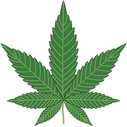 This features a close-up of a marijuana leaf, showcasing its intricate details. The leaf is green and has a slightly curved shape, giving it an organic appearance. The leaf's veins are visible, adding to the realism of the illustration. This detailed representation of a marijuana leaf can be used for various purposes such as educational materials or artistic designs.