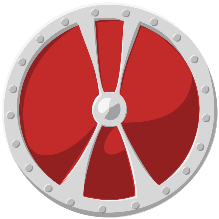 This features a red and white shield with a hole in the middle. It appears to be an old, possibly vintage design. The shield is prominently displayed on a white background, which allows it to stand out as the main focus of the image. The combination of red and white colors gives the shield a classic and timeless appearance.