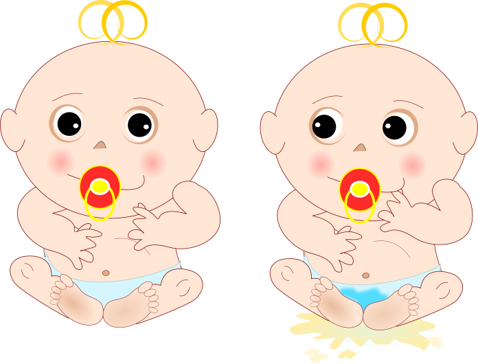 This features two identical baby illustrations, each with a pacifier in their mouths. They are sitting next to one another and appear to be enjoying the moment. One of the babies has soiled its diaper, adding an element of humor to the scene. The overall atmosphere is light-hearted and playful, as it captures the innocence and charm of young children.