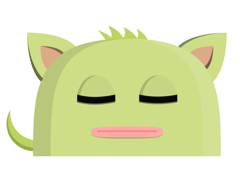This features a cartoon cat with its eyes closed, giving the impression of being asleep. The cat is positioned in the center of the frame and appears to be resting comfortably. Its green color adds a playful touch to the scene. The overall composition creates an adorable and peaceful atmosphere.