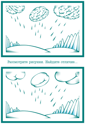 This features a scene of rain falling from the sky, with clouds shaped like a brain and butt. These unique cloud formations are scattered across the sky, creating an interesting visual effect. The rain pours down on the landscape below, adding to the overall atmosphere of the scene. In addition to the clouds, there is a mountain visible in the background, further enhancing the natural beauty of the image.