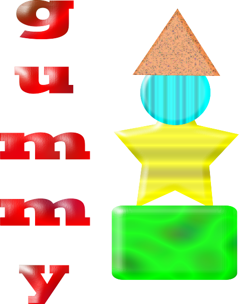 This features a colorful display of letters and numbers, with the word "Gummy" being prominently displayed. Above this word, there is an eye-catching yellow star that stands out against the background. In addition to the star, there are two other stars located towards the right side of the image. The overall composition creates a visually appealing and playful scene.