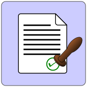 This features a purple background with an icon of a file folder and a green checkmark. Inside the file folder, there is a piece of paper that has been marked with a green checkmark. This could be used to indicate that something has been completed or reviewed. The overall design gives off a sense of organization and completion.