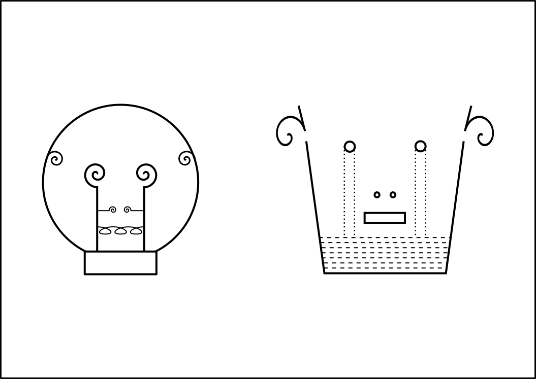 This is a completely free image Two black and white drawings of a light bulb and a cup that you can download, post, and use for any purpose.
