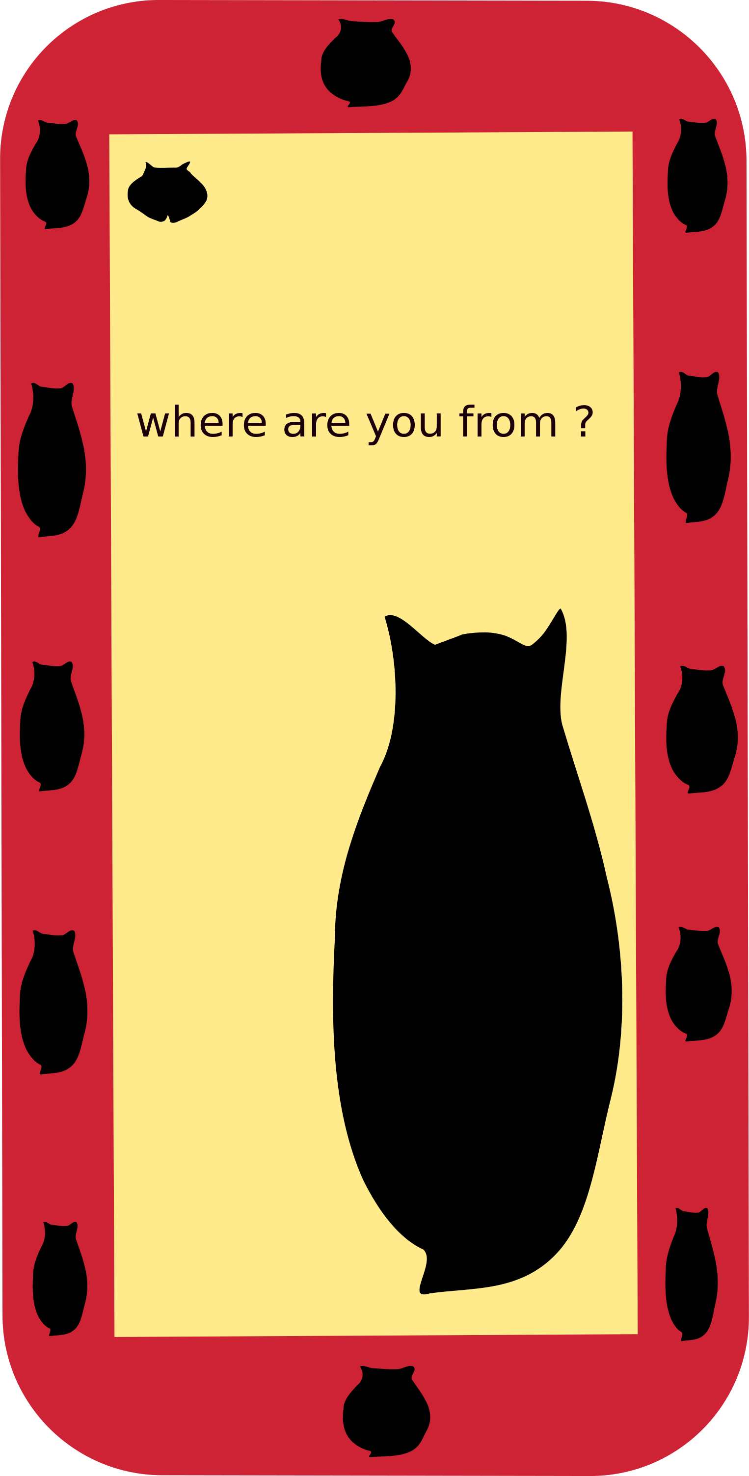 This features a red and yellow background with a black cat silhouette in the center. The cat is positioned on top of a vase, which has been modified to resemble a cat's shape. There are several other cats scattered throughout the scene, some of them appearing as if they are coming out of the vases. These additional cats add an interesting and playful element to the overall composition of the image. The combination of the black cat silhouette and the various other cats creates a unique and visually engaging piece that captures the viewer's attention.