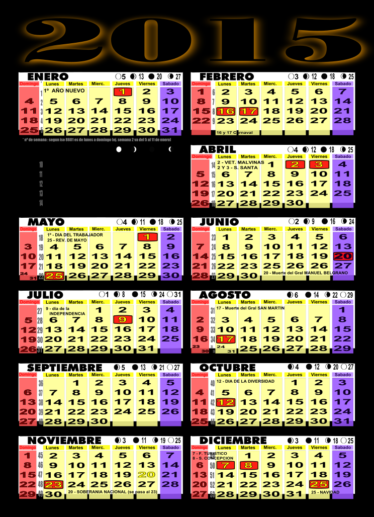 This features a calendar with the year 2015 displayed on it. The calendar is colorful and has various months listed, including Mayo, Junio, Julio, Agosto, Septiembre, Octubre, Noviembre, Diciembre, Enero, Febrero, Marzo, Abril, Mayo, Junio, Julio, Agosto, Septiembre, Octubre, Noviembre, and Diciembre. Each month is represented by a different color, making the calendar visually appealing. The calendar also has a Spanish language theme, indicating that it may be intended for use in a Spanish-speaking country or region.
