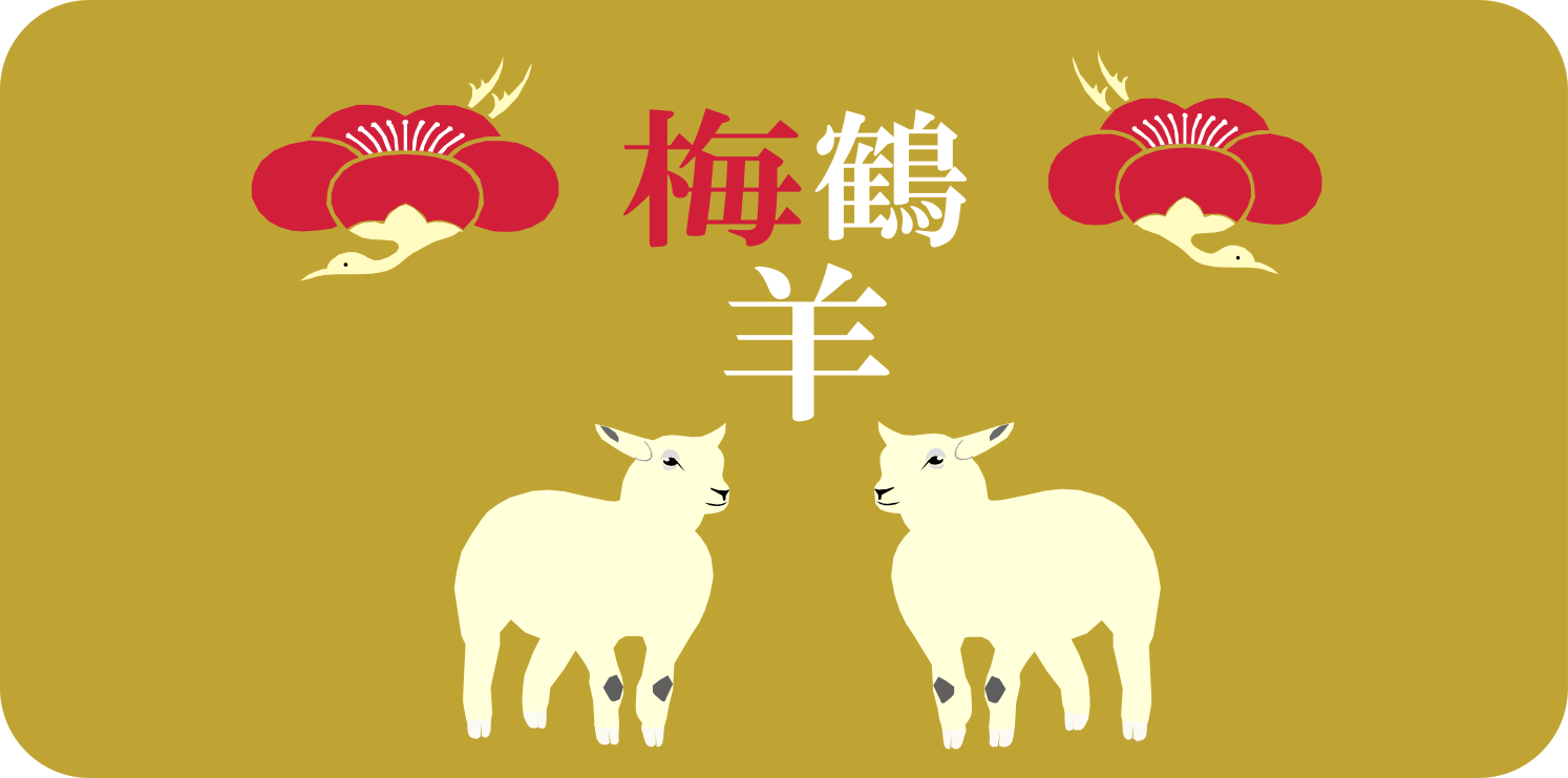 This features a yellow background with two sheep standing next to each other. One of the sheep is white, and the other one has a brown color. They are positioned close together, creating an interesting visual effect. In addition to the sheep, there are several birds scattered throughout the scene, adding more life to the picture. The overall composition of the image gives off a sense of harmony between nature's elements.