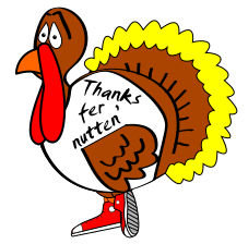 This features a cartoon turkey with a sign on its back that reads "Thanks for nutting". It is wearing red sneakers and appears to be in a playful mood. The turkey's head is turned to the side, giving it an amusing expression. This whimsical scene likely represents a lighthearted take on the traditional Thanksgiving holiday.