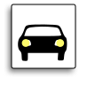 This features a car icon, which is a simple and recognizable symbol of a vehicle. It appears to be a small, square-shaped picture that represents the front end of a car. This icon could be used for various purposes such as signage or buttons, indicating transportation or parking facilities. Its simplicity makes it versatile and easily understandable by people from different backgrounds and cultures.