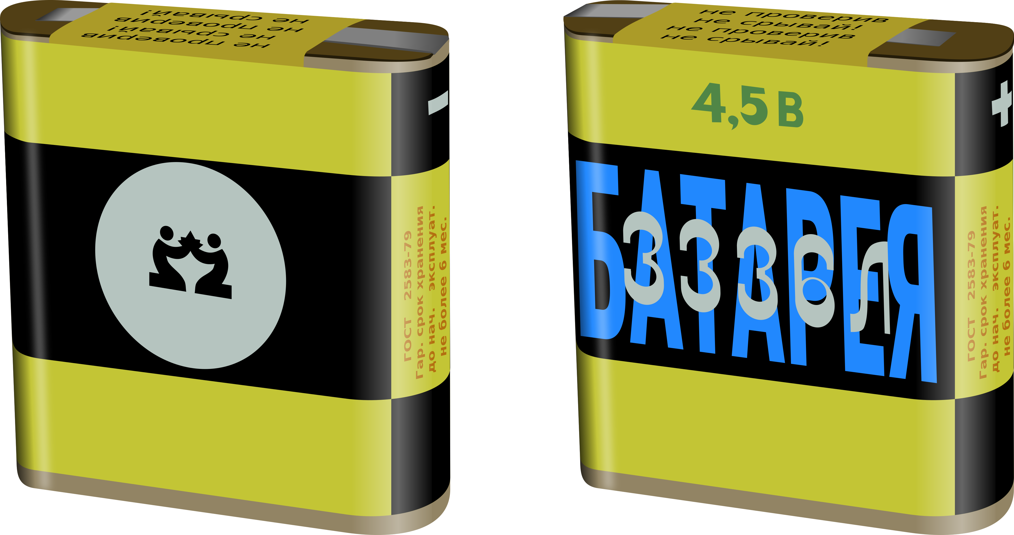 This features two yellow and black batteries with Russian writing on them. These batteries are placed side by side, showcasing their similar appearance. The batteries have a unique design, making them stand out from typical battery packs. The Russian text on the batteries suggests that they may be intended for use in Russia or cater to a specific market there.