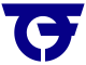This features a blue and white logo that is shaped like an upside down letter G. This unique design element gives the logo a distinctive appearance, making it stand out from more traditional logos. The color scheme of the logo consists of blue for the background and white for the letter itself, creating a striking contrast against the blue sky in the image.