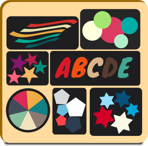 This features a colorful and diverse collection of shapes, including stars, circles, triangles, pentagons, and letters. These shapes are arranged in an organized manner within the frame, creating a visually appealing display. The various colors used for each shape add to the vibrant nature of the illustration, making it an attractive piece of artwork or design element.