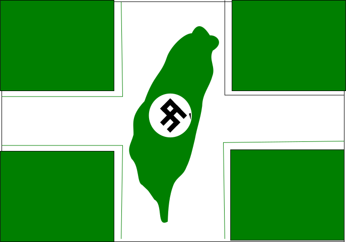 This features a green and white flag with a square shape. In the center of the flag, there is a black symbol that stands out against the white background. Additionally, there is a cross on the flag, which adds to its distinctive appearance. This unique design makes it an interesting and eye-catching display piece.