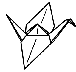 This features a black and white drawing of an origami crane. It is a simple, yet elegant design that showcases the paper bird's unique shape. The origami crane is depicted in various stages of folding, giving it a sense of depth and dimension. This artistic representation of the paper bird captures its intricate structure and highlights the skill involved in creating such an impressive piece of craftsmanship.