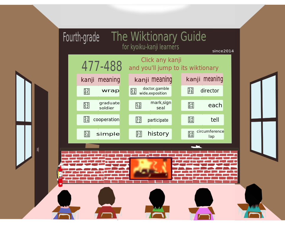 Tags: chinese, chinese character, circumference, cooperation, director, doctor, gamble, graduate, hanja, hanzi, history, kanji, lap, mark, seal, sign, simple, soldier, tell, wide, wiktionary, wrap, fourth grade, kana, dictionary