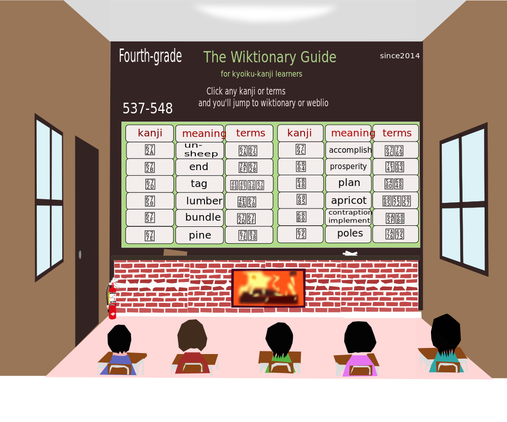 This depicts a classroom setting where five students are sitting at desks, attentively learning Japanese. They are seated in front of a large green board that displays various Japanese words and phrases. The students appear to be engaged in their lesson, possibly working on memorizing the vocabulary or practicing their language skills. The classroom is furnished with multiple chairs, some of which are occupied by the students, while others remain empty. Overall, it's a typical scene of students learning and studying together in a focused environment.
