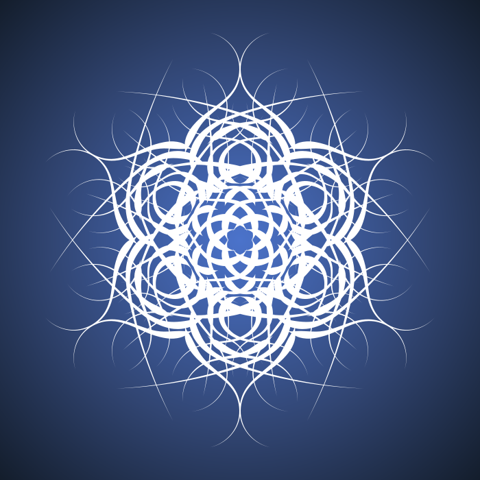 This features a blue and white geometric pattern, which appears to be an artistic representation of a snowflake. The design is composed of multiple interconnected circles, creating a visually appealing and intricate structure. The overall effect gives the impression of a snowflake, with its delicate and intricate details. This image could potentially be used for various purposes such as wallpaper, graphic design or even as an art piece to showcase the beauty of nature's patterns.