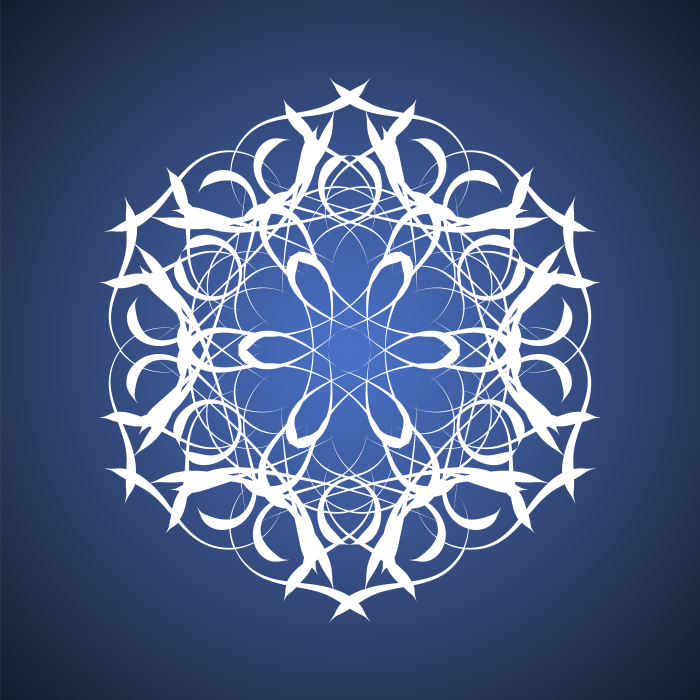 This features a blue circle with white designs on it, giving the appearance of a snowflake. The circle is surrounded by an array of smaller circles, creating a visually appealing pattern. The design appears to be intricate and detailed, making it an interesting focal point in the image.