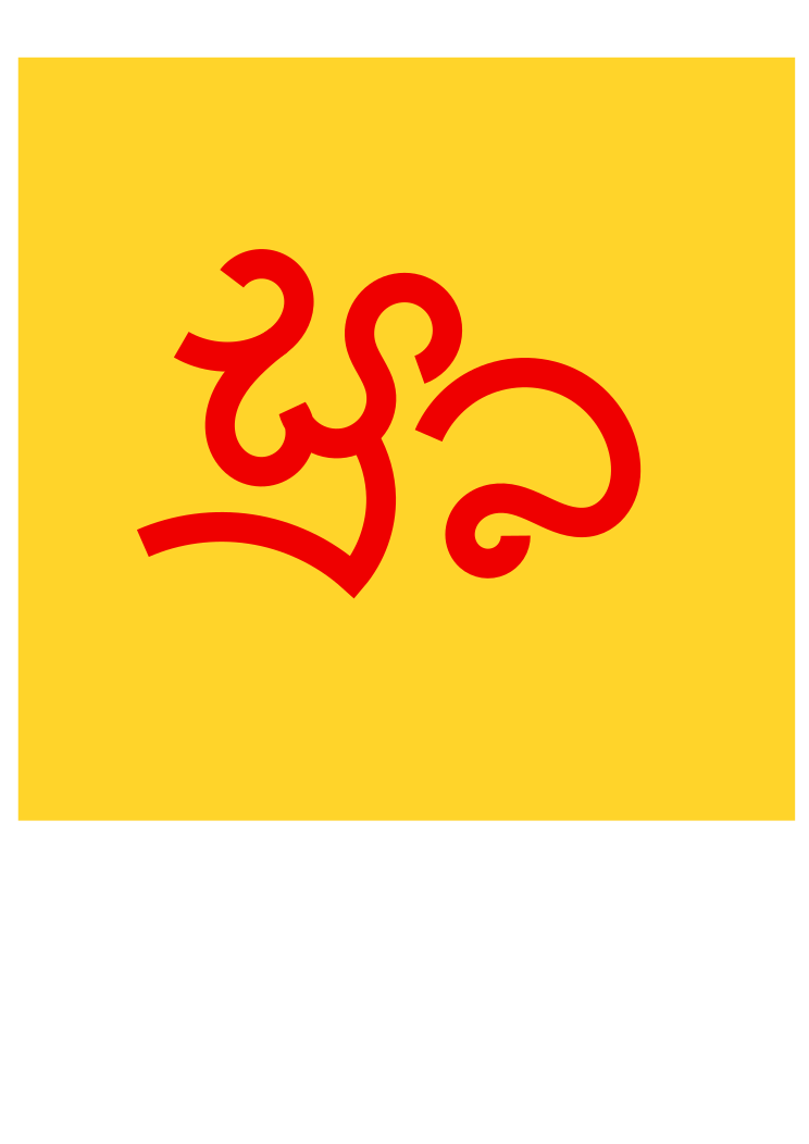 This features a yellow background with an orange and red symbol, possibly a letter or a logo. The color combination of the yellow and red creates a vibrant and eye-catching appearance. The symbol is placed in the center of the frame, drawing attention to it as the main focus of the image.