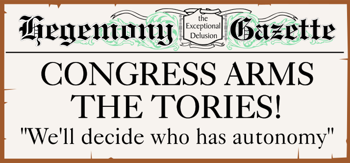 This is a large, old-fashioned newspaper headline that reads "Congress Arms the Tories!". This headline appears to be from an older time period and has a vintage feel. It seems to be a political statement or commentary on Congress's actions during that time. The headline is displayed prominently, likely as part of a larger newspaper or display.