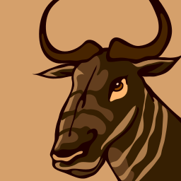 This features a large, horned animal with a brown and white color scheme. It appears to be an illustration of a bull or a similar creature, possibly a gnu. The animal's face is prominently displayed in the foreground, capturing its unique features such as its large eyes and distinctive horns. The image has a vintage feel to it, giving it a sense of history and charm.