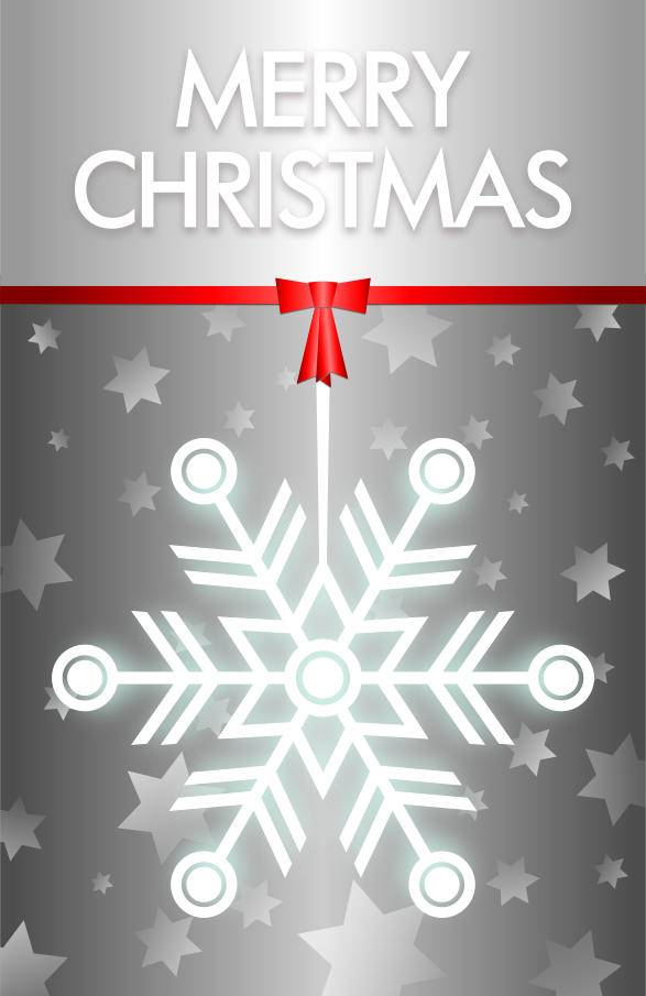 This features a festive Christmas card with a snowflake design. The card is adorned with a red bow and stars, creating an eye-catching display. The words "Merry Christmas" are written in bold letters at the top of the card, adding to its holiday cheer. The overall appearance of the card suggests it would be a delightful way to spread joy during the holiday season.