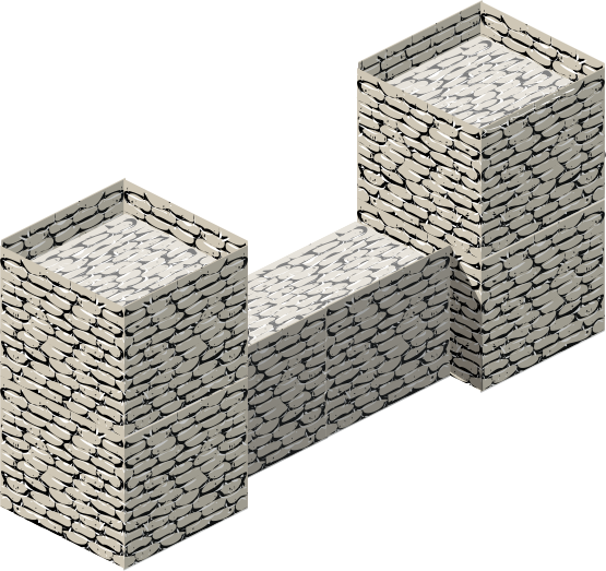 This features a large brick wall made of stone, with two distinct sections. One section is positioned to the left and the other to the right. These two sections are connected by a bridge-like structure that spans across the middle of the wall. The overall design gives an impression of a sturdy and well-built structure.
