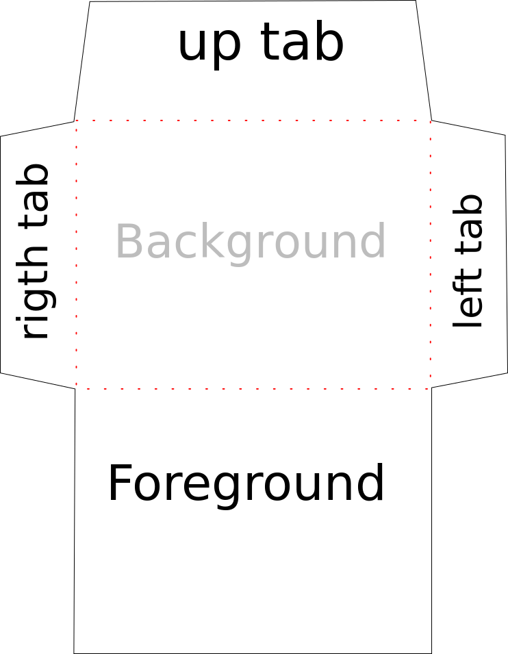This is a diagram that shows the different parts of an envelope. It has a black outline and labels to indicate which part corresponds to each section. There are four main sections: left, right, top, and bottom. Each section is labeled with a corresponding letter (L, R, T, B) to help identify them easily. The diagram also includes the words "up tab" and "background" in the top-left corner, which may provide additional context or information about the envelope design.