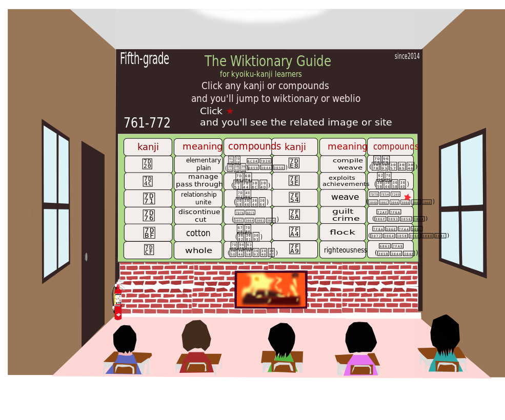 Tags: achievements, chinese, chinese character, cotton, crime, cut, elementary, flock, hanja, hanzi, kanji, plain, relationship, righteousness, unite, weave, whole, wiktionary