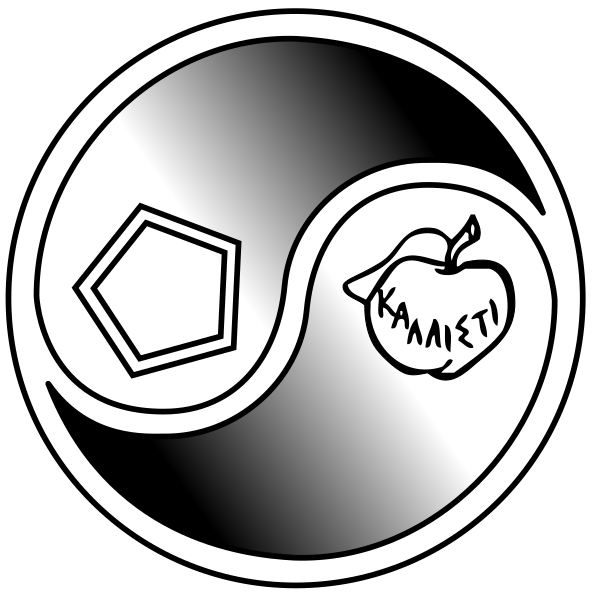 This features a black and white circle with an apple in the center. The apple is labeled as "Kanaiti," which suggests that it might be a symbol or logo related to the fruit. The circle itself has a yin-yang symbol, indicating balance and harmony. This combination of elements creates a visually appealing and thought-provoking image.