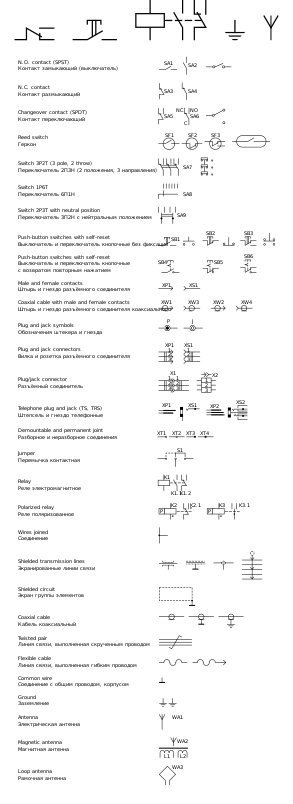 This is a completely free image GOST Electronic symbols: Wires, switches, connectors etc that you can download, post, and use for any purpose.