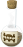 This features a small glass bottle with a brown liquid inside. It has a label on it, which includes an illustration of a skull and crossbones. This type of label is often associated with poison or dangerous substances. The bottle appears to be made of ceramic material, giving it a unique appearance.