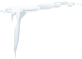This features a white cloud with a long, thin tail extending downwards. This unusual cloud formation is reminiscent of the iconic scene from the movie "The Wizard of Oz," where Dorothy's house lands in Munchkinland after being swept away by a tornado. The cloud appears to be floating against a white background, creating an interesting contrast between the cloud and its surroundings.