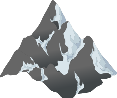 This features a large, gray mountain with a rocky texture. It appears to be an artistic representation of the mountain, possibly in a cartoon or graphic style. The mountain is covered in snow and has a few visible crevices, giving it a rugged appearance. The overall scene conveys a sense of adventure and exploration, as one might imagine climbing such a majestic peak.
