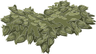 This features a large pile of green leaves and branches, possibly resembling a plant or a tree. These leaves are scattered across the scene in various positions, creating an interesting visual effect. The overall composition of the image gives off a sense of depth and dimension, as if the viewer is looking at this arrangement from a distance. This artistic display could be used for various purposes such as decoration, designing, or even as part of a larger project that incorporates natural elements.
