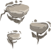 This features a collection of four different types of rocks, each with unique shapes and sizes. They are all placed on top of a brown background, giving the impression that they are in a natural setting. Each rock is accompanied by a footprint, indicating that someone has been there before or perhaps left it as a marker for others to follow. The arrangement of these rocks creates an interesting visual effect, with each rock slightly overlapping the other, creating depth and dimension within the image.