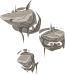 This features a collection of four different drawings or illustrations, each with unique characteristics. These images are part of the Glitch clipart series, which was created as visual assets for a failed computer game called Glitch. The game's creators released these assets into the public domain after the game's commercial failure. The four illustrations in this image include two that resemble animal heads or faces, one with an alpine landscape theme, and another with a ladder as its central element. These drawings are presented in a brown color scheme, which adds to their distinctive appearance. The Glitch clipart series consists of over 2,000 different illustrations, offering a wide range of creative options for artists or designers working on various projects.