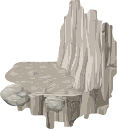 This features a rocky landscape with a large stone wall and a chair placed on top of it. The chair is positioned in the middle of the scene, surrounded by various rocks that create an interesting visual effect. The overall composition gives off a sense of adventure or exploration, as if one were climbing up to reach the chair atop the rocky terrain.