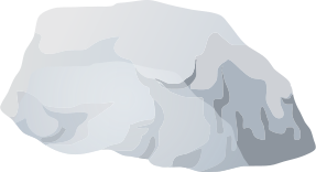 This features a large rock, possibly made of concrete or stone, sitting on top of a white surface. The rock appears to be weathered and has a somewhat rough texture. It is situated in the center of the scene, occupying most of the frame. The white background provides a stark contrast against the rock's color, making it stand out prominently.