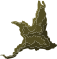 This features a brown and green mountainous landscape with a large, detailed tree in the foreground. The tree is surrounded by a variety of smaller trees, creating an overall sense of depth and complexity within the scene. The mountainous terrain appears to be covered in moss, adding to the natural beauty of the environment. This image showcases the intricate details found within the glitch clipart collection, which includes various landscapes and elements from a computer game that failed commercially.