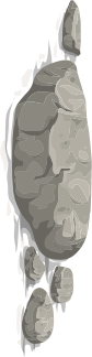 This features a collection of rocks, including a large rock that is partially hidden behind another smaller rock. These rocks are arranged in such a way that they appear to be floating or protruding from the surface. The scene gives an impression of depth and intricacy, as if it were part of a computer game or digital artwork. The rocks vary in size and shape, creating a visually interesting composition.